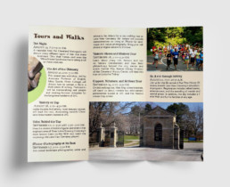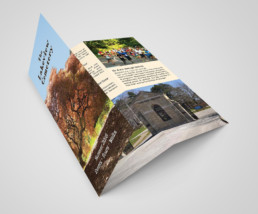 This tri-fold brochure showcases the liveliness of the cemetery, including events and information as well as photographs of architecture and plant life.