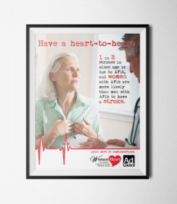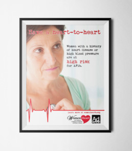 This campaign establishes a consistent advertising layout and color scheme. The goal was to provide awareness and emphasize the seriousness of atrial fibrillation to women.